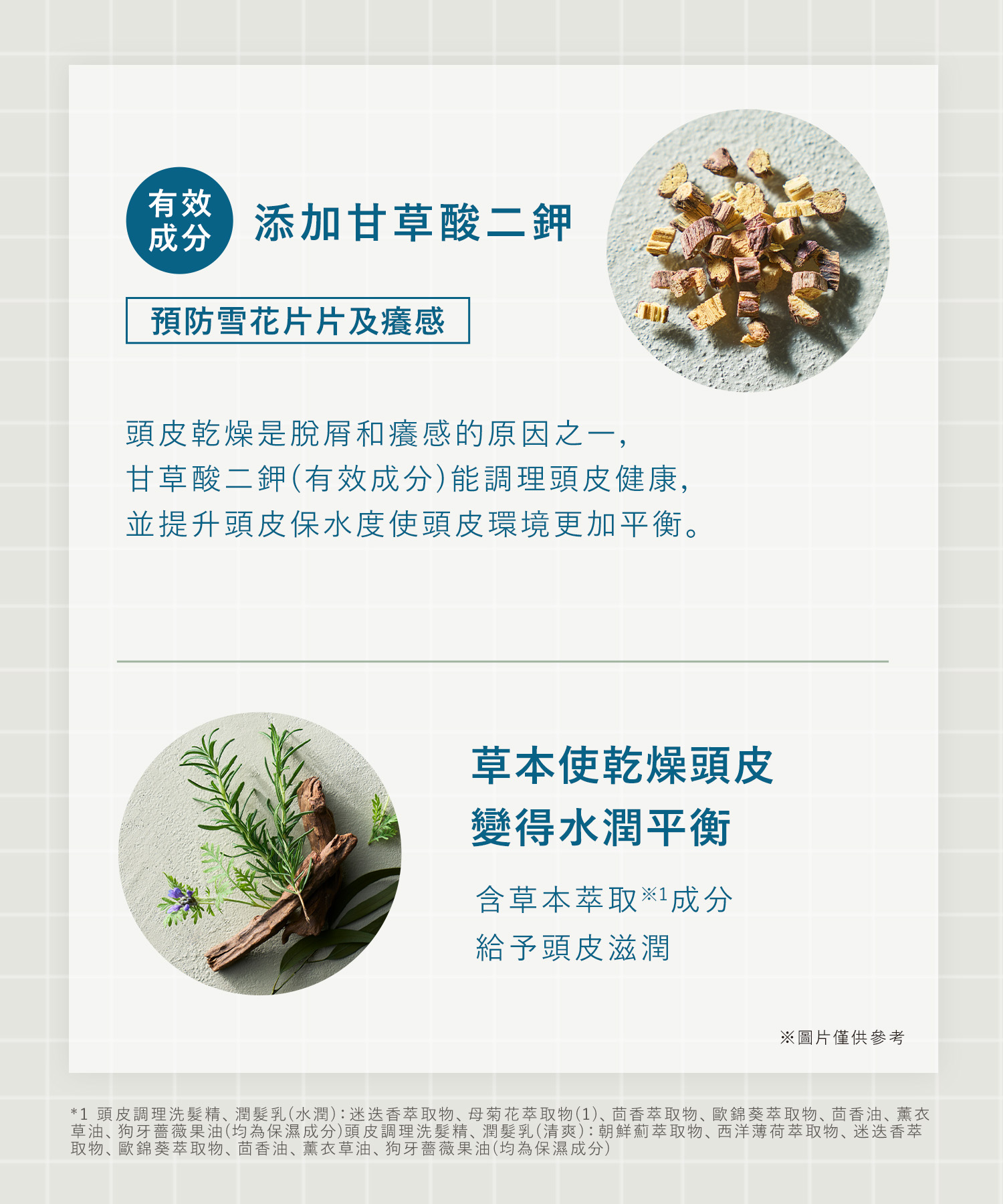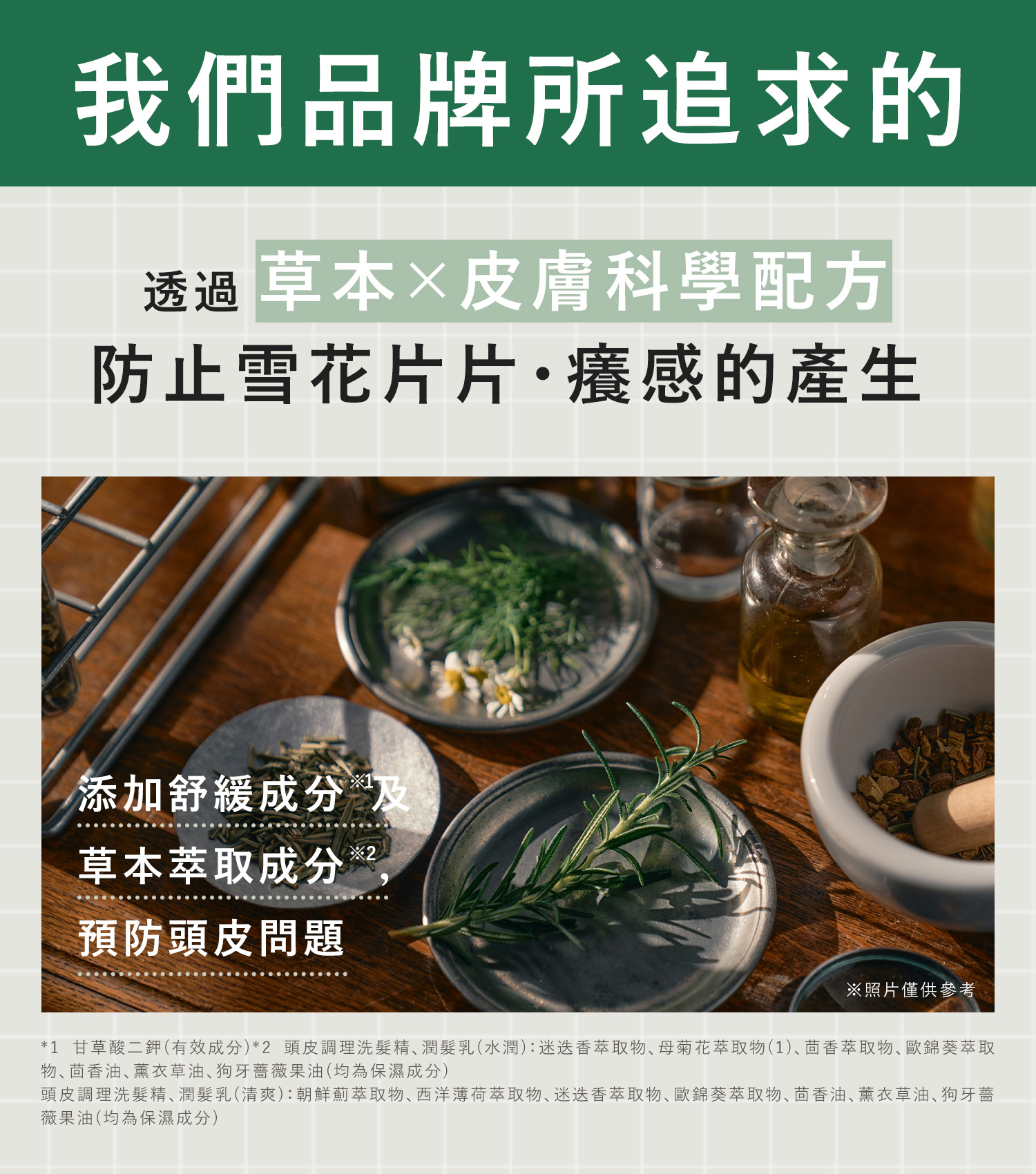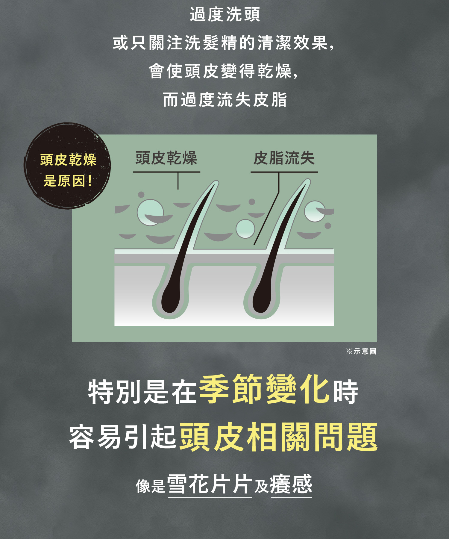・防止因頭皮黏膩/乾燥造成雪花片片和癢感